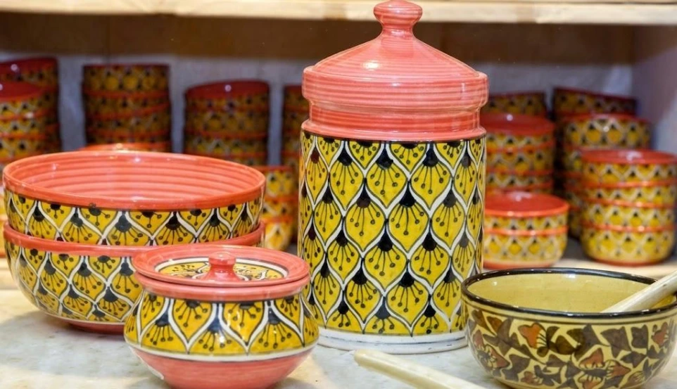 The traditional motifs like tessellating type of jaali, all over motifs and the stylized floral designs reflect their Persian origins. The adherence to hand painting has lent a high level of delicacy to this art and has contributed to the designs looking fresh and full of life..